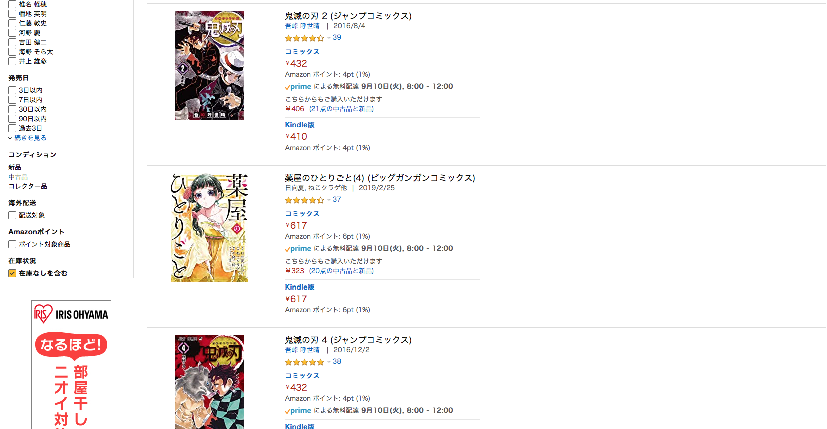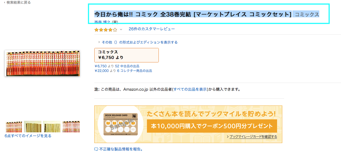マンガに詳しいのであれば「少し高くなっているな・・」と思うかもしれませんが、普通はAmazonで開いた瞬間の価格が妥当だと考えるはずです。