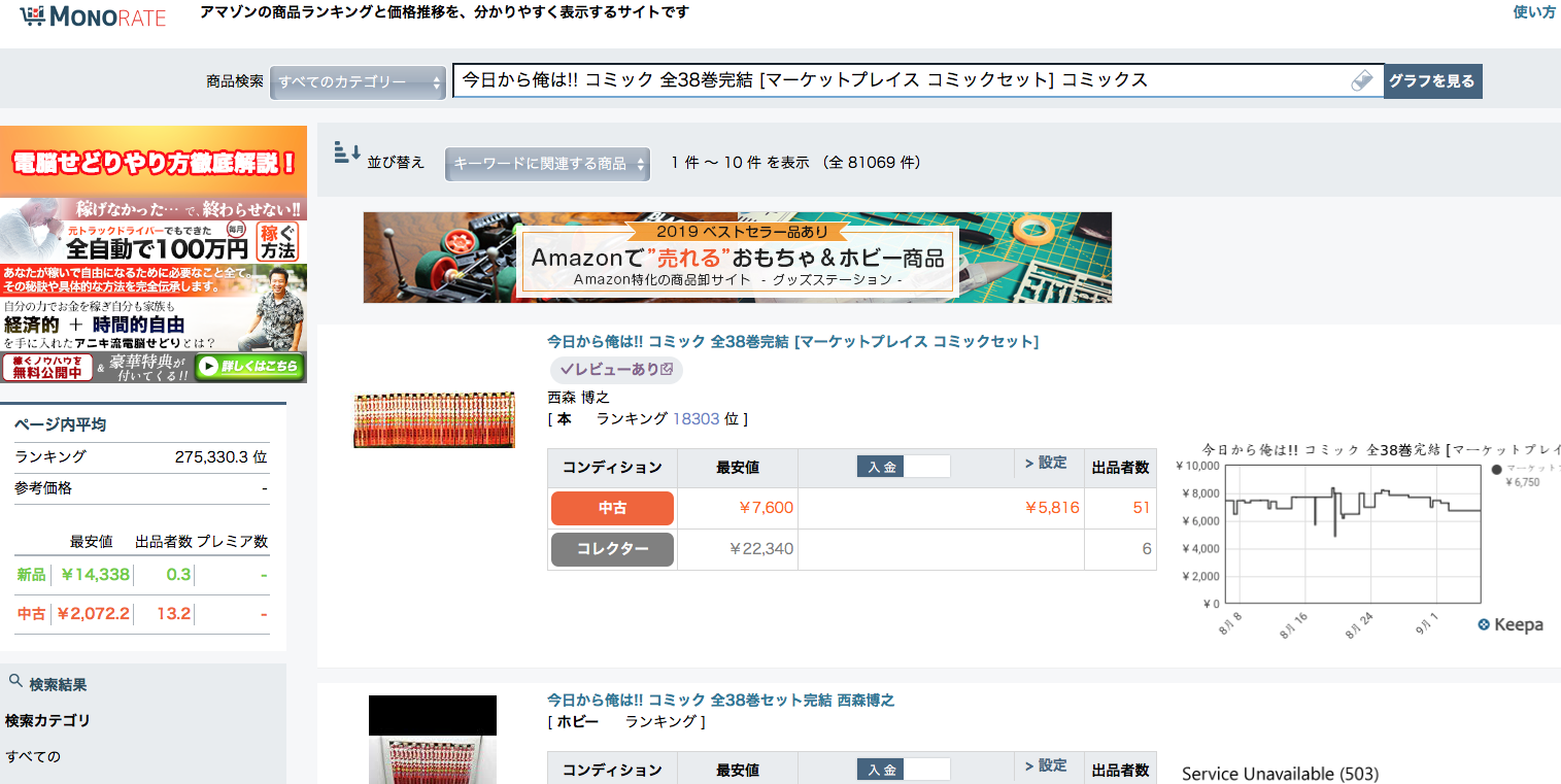 普通であれば、商品を出品するときには「モノレートで相場を確認して出品しましょう」というのが常識であり定説です。相場から離れた金額では商品が売れなくなってしまうからです。