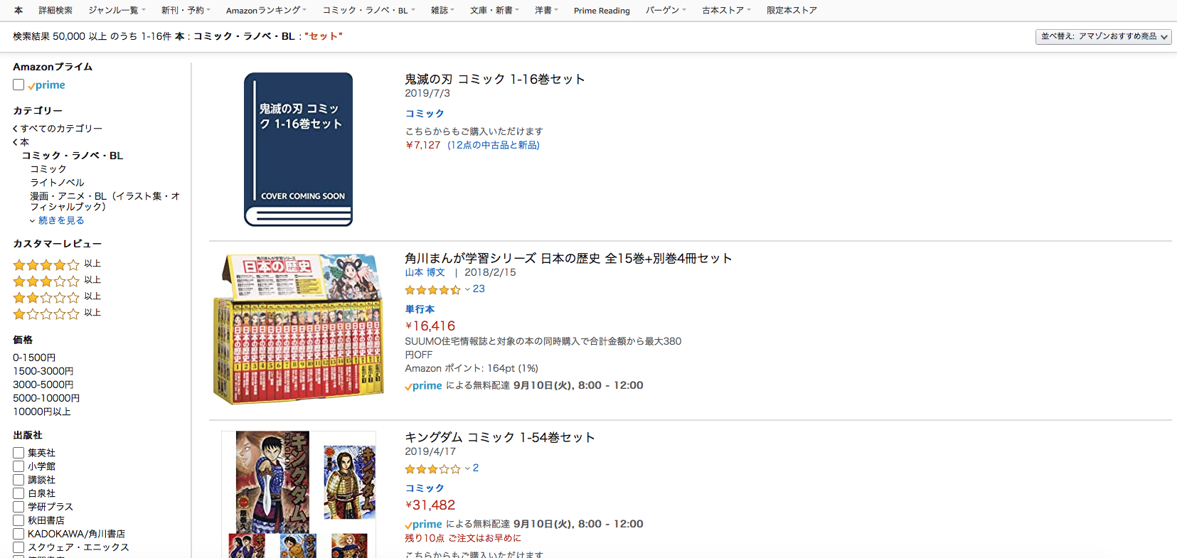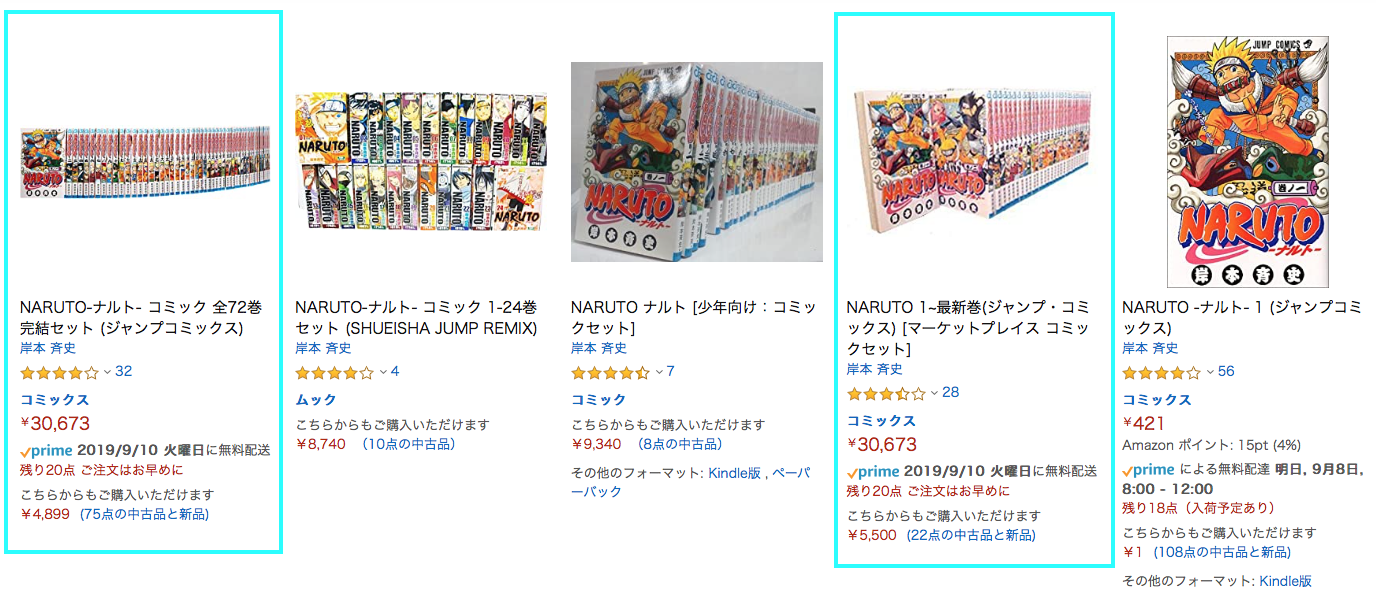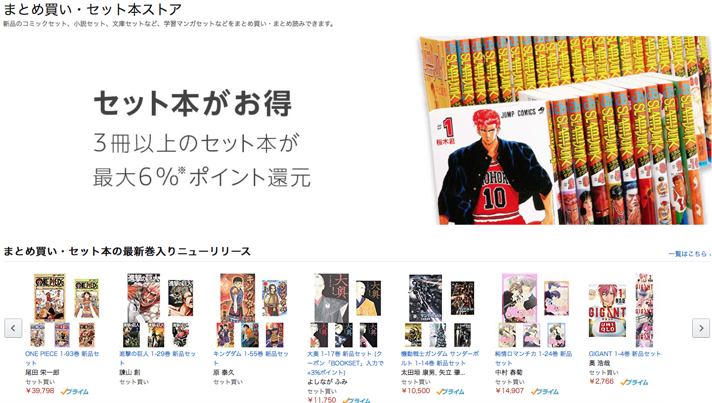 そこで購入しようと思いAmazonで検索をします。そこで開いたときに「〇〇巻セット5,000円」と表示されていました。