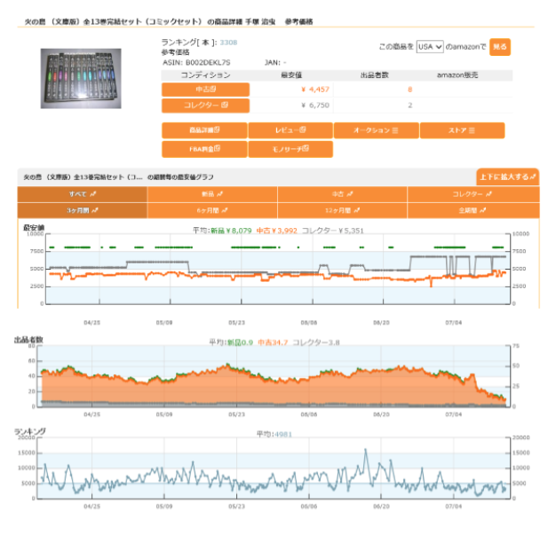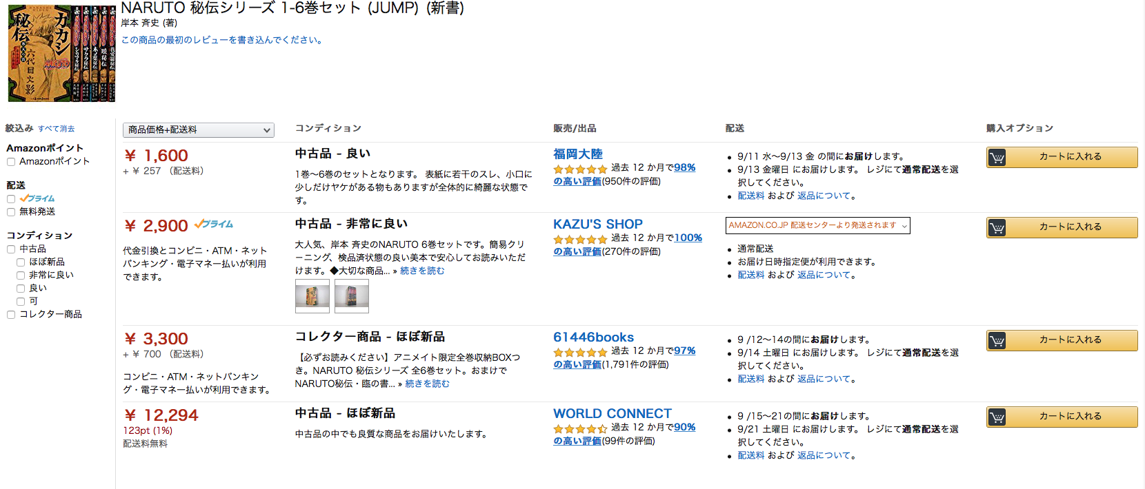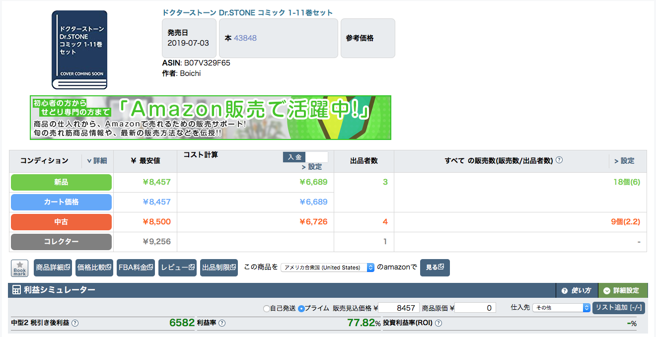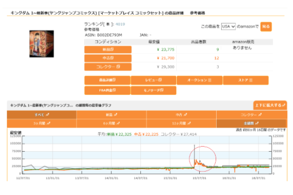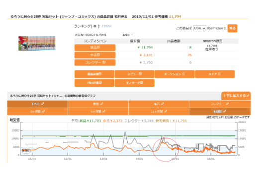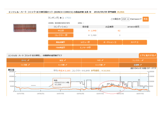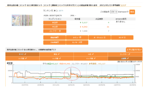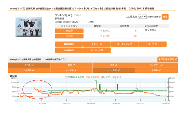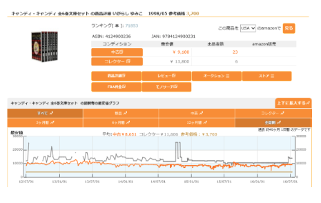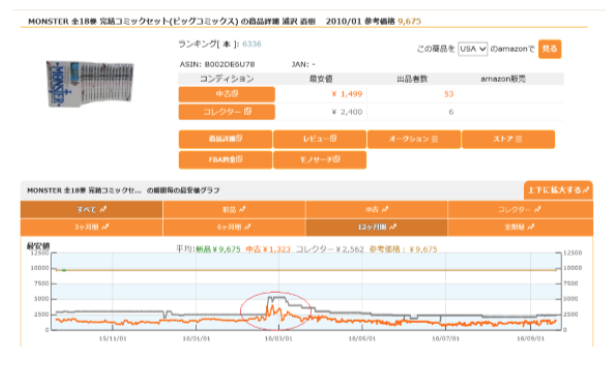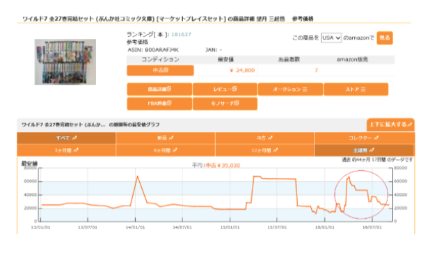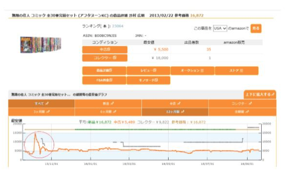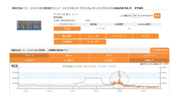 もし、この時に買い占めをしてなかったら、トレンドとはいえ売れ行きは分散してこれほど売れなかったと思いますし、セット本ではなければ高騰後に簡単に出品者が増えていたと思います。